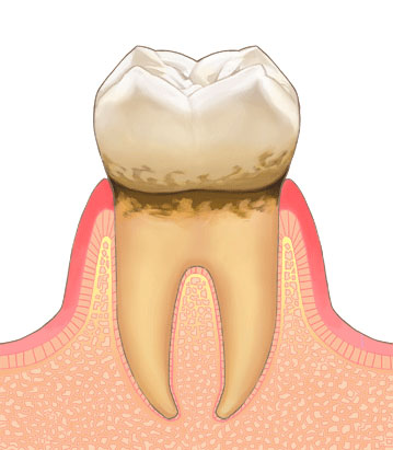 歯茎と歯の間のポケットがさらに深くなり、歯周組織の破壊が進行します。