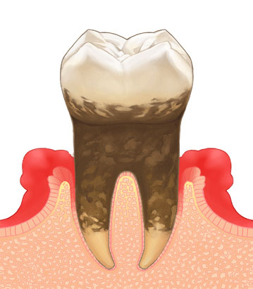 歯石の蓄積が進み、歯茎と歯が離れることで感染が進行します。